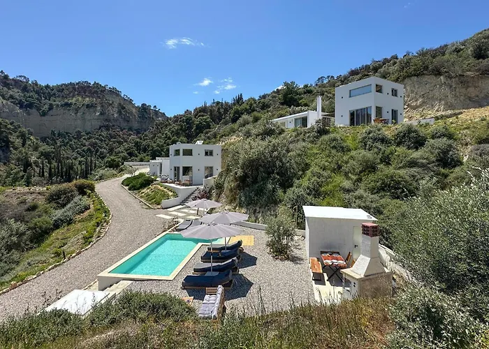 Ein schöner Blick aufs Meer ist in der 1-Zimmer- Villa Evoikon Ligia garantiert. Die Villa in Ligia verfügt über ein Badezimmer mit einer Badewanne.